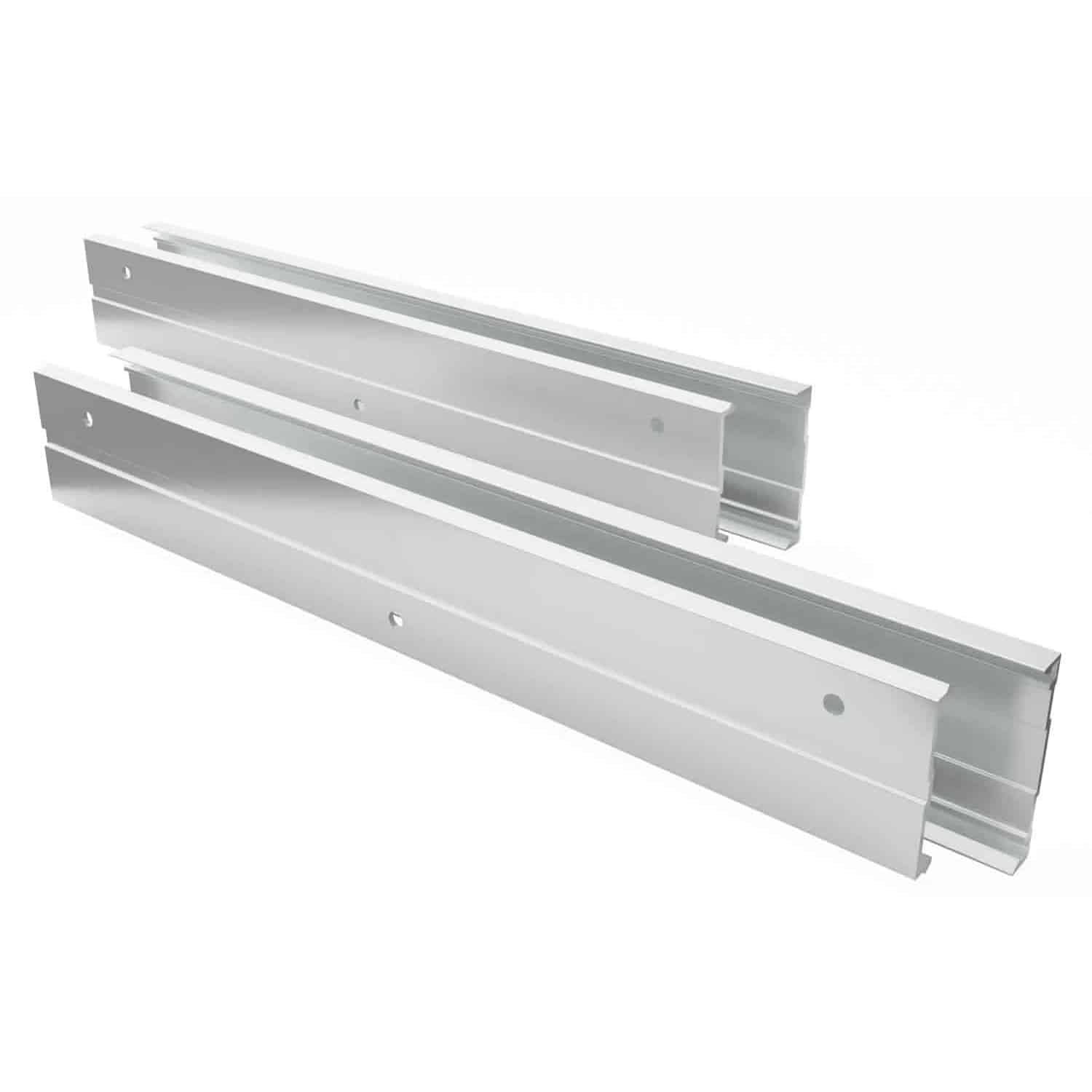 Our Zero-Lift Snap-Fit MSNAP Kits shown with securely installed rails on both the wall and mounting surface. Each kit includes matching wall and panel rails in 24, 36, or 48 inch lengths for precise alignment and easy installation.